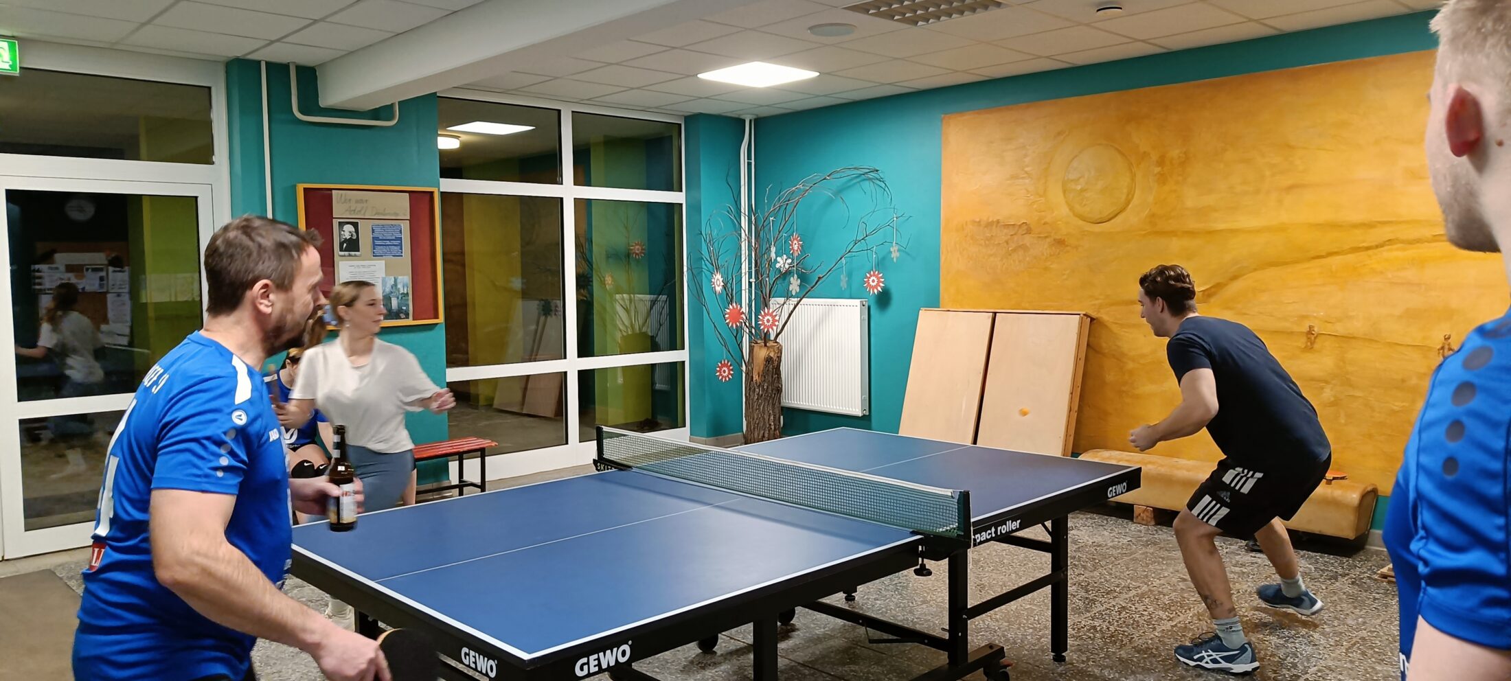 Auch die Besucher und Zuschauer kamen voll auf ihre Kosten. Bei Musik konnte man im Foyer an den Stehtischen klönen oder sich an der Tischtennisplatte austoben. Hier war wie gewohnt viel Betrieb mit großem Spaß.