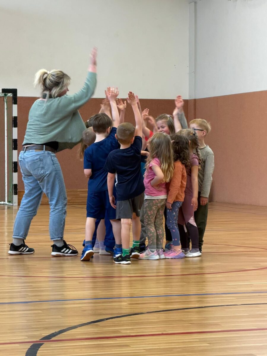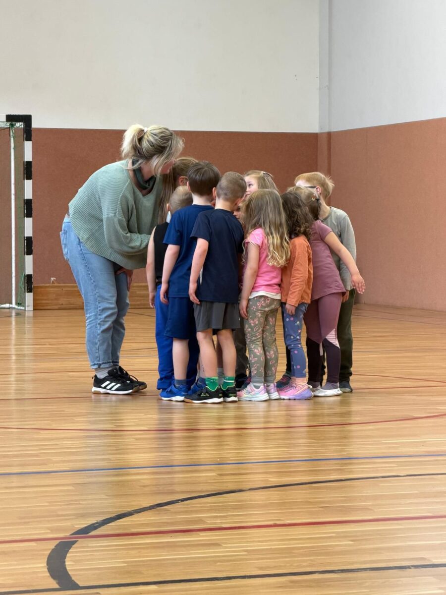 Ein weiterer Schwerpunkt liegt auf dem sozialen Lernen: Die Kinder üben Teamgeist, Rücksichtnahme und den Umgang mit einfachen Regeln – wichtige Grundlagen für Schule und Alltag.